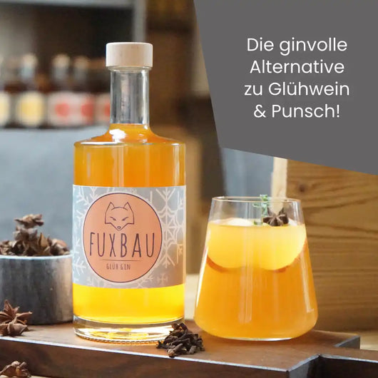 Der Fuxbau Glüh Gin wird nach der Destillation mit winterlichen Gewürzen wie Sternanis, Zimt, Nelken und Orangenschalen verfeinert, und ist dadurch die perfekte, und 100% natürliche, Alternative zu Glühwein und Punsch.